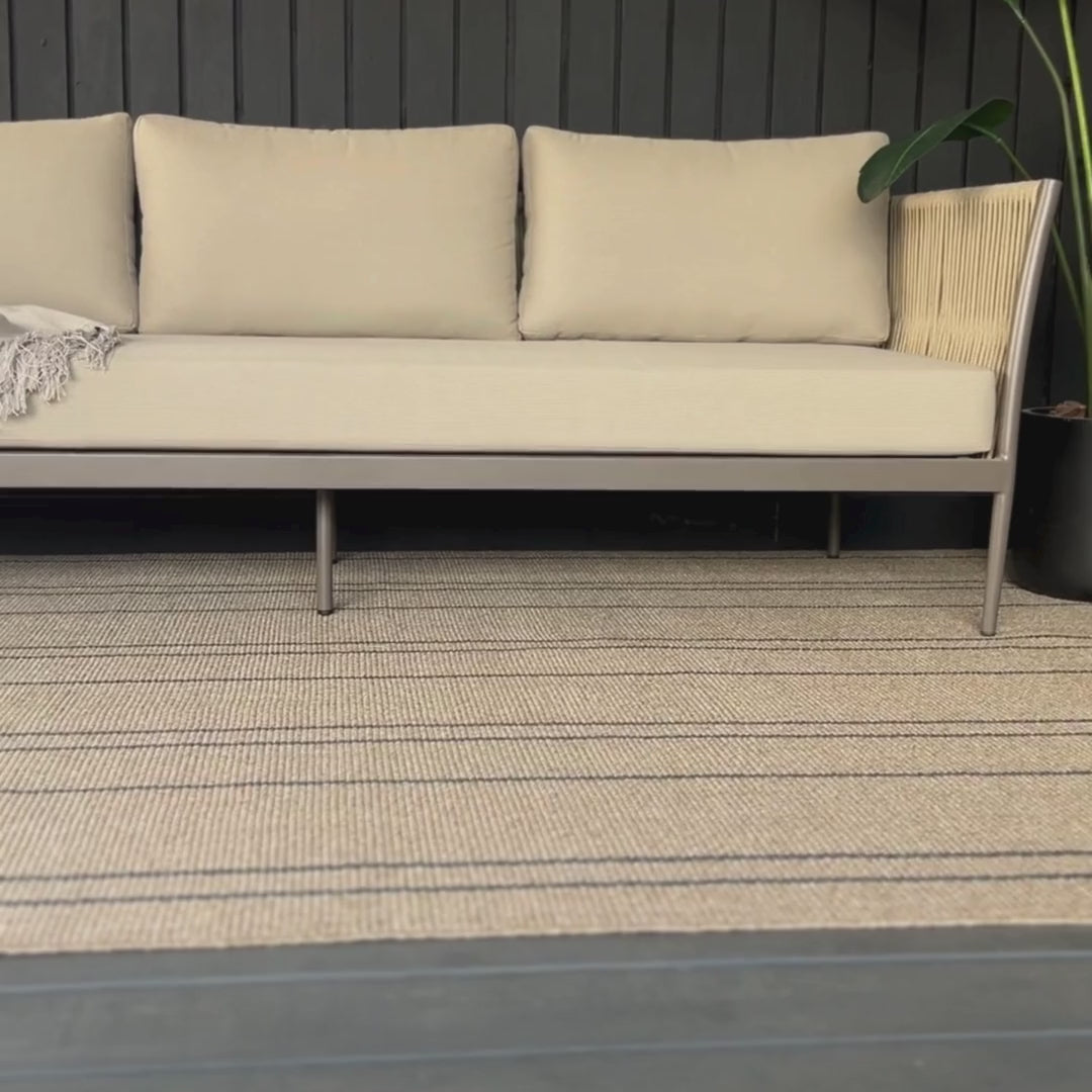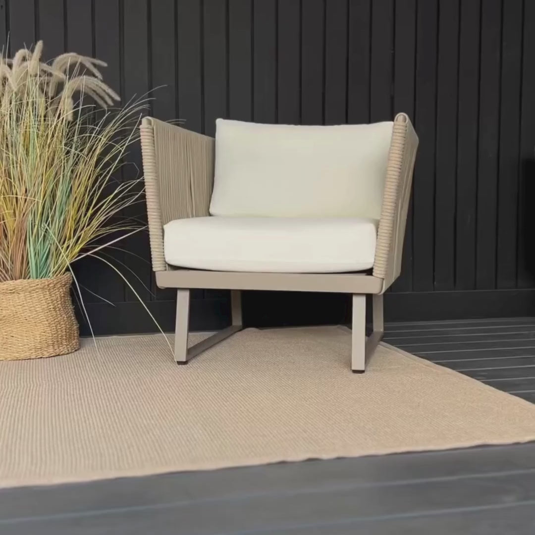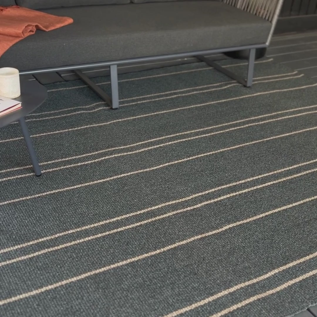 Alfombra artesanal de polipropileno, duradera y de fácil mantenimiento, apta para interiores y exteriores.
